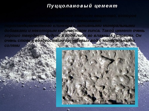 - Ciment de Portland Pozzolanique - ces matériaux de construction incluent des composants d'origine volcanique dans leur structure. Cette composition durcit rapidement à la fois à l'air libre et à l'eau, tandis que les mélanges à base de ce ciment ne donnent aucune efflorescence et sont fortement hygroscopiques.En règle générale, ce type de matériel est utilisé lors de l’équipement de piscines.
