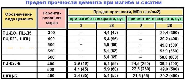 Tous les types de ciment ont des désignations spéciales qui reflètent leur domaine d'utilisation. Le marquage consiste en lettres et chiffres.