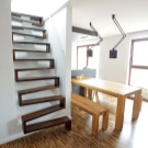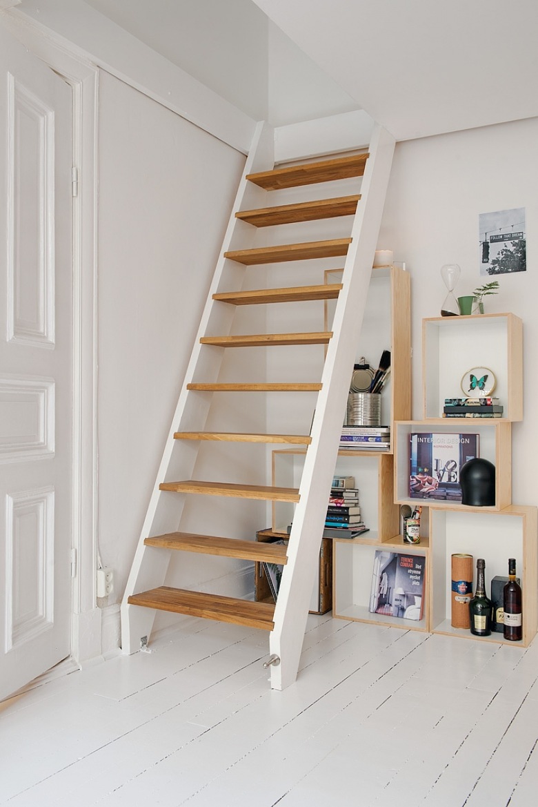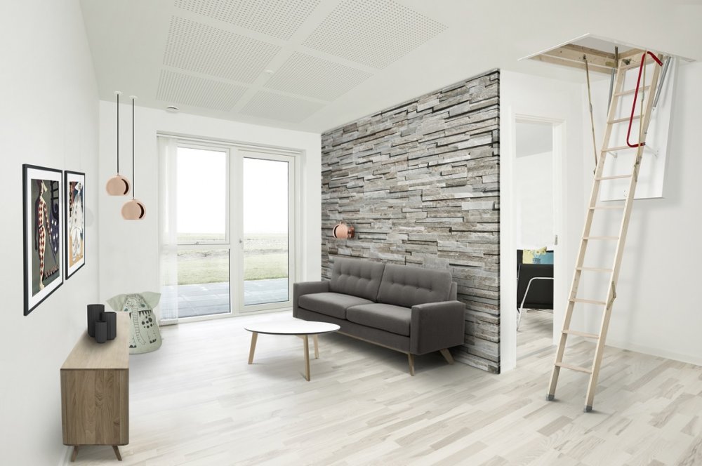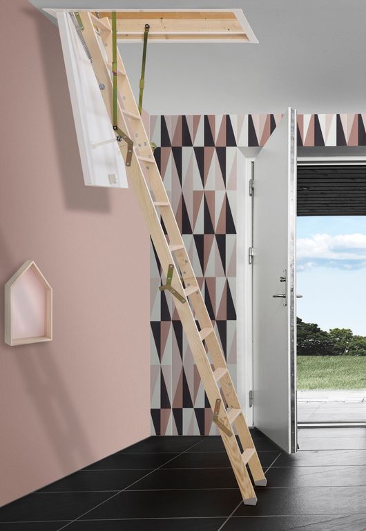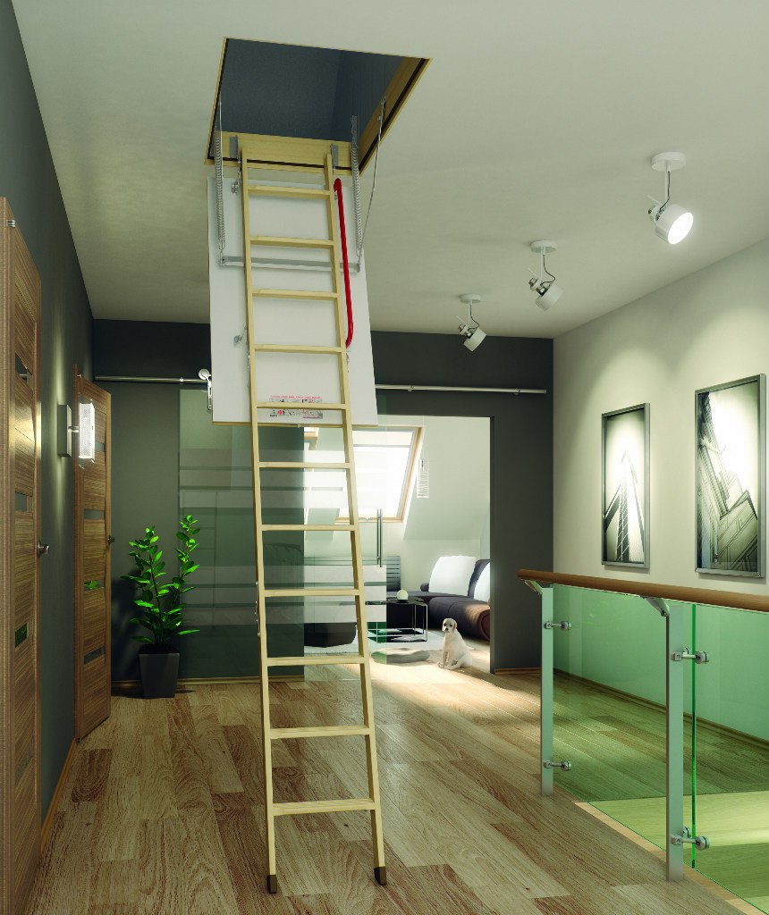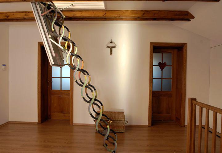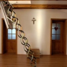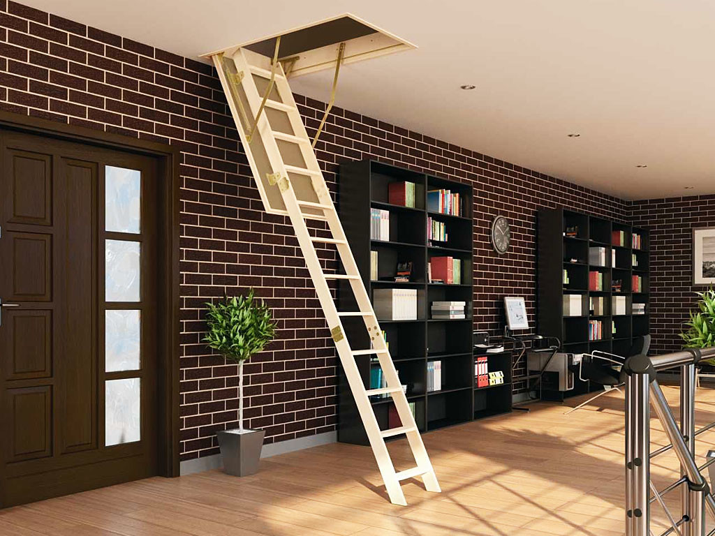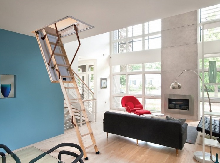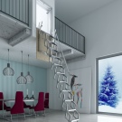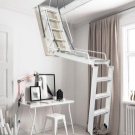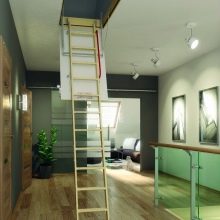 - Le premier et le plus évident avantage de ces produits - gain de place, mais seulement dans le cas où le choix est fait en faveur des modèles pliables et portables, car il doit y avoir suffisamment d’espace pour que l’installation puisse accueillir des structures fixes dans la maison.Les deux premiers types permettent d’accéder rapidement et facilement au grenier sans enlever les mètres carrés utiles de la maison. Les escaliers fixes ne sont pas moins fonctionnels, mais occupent en même temps une certaine partie de la surface de la maison.