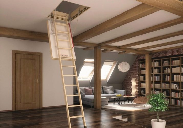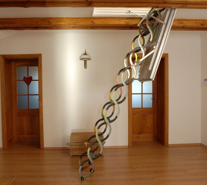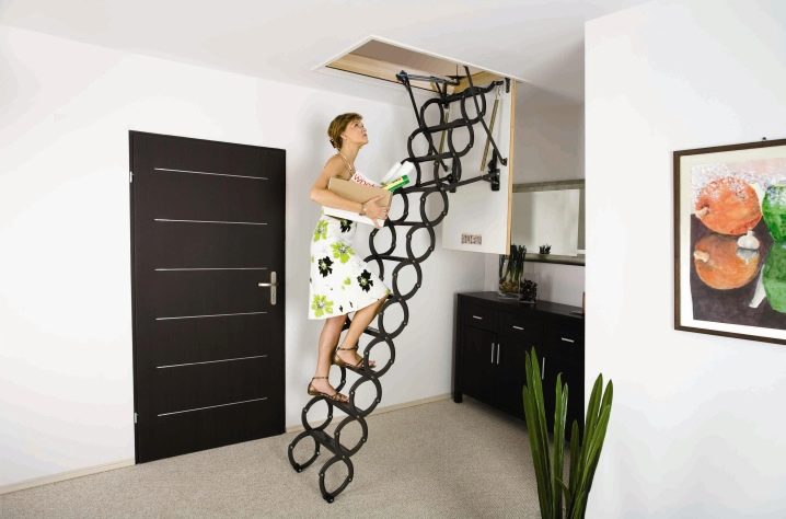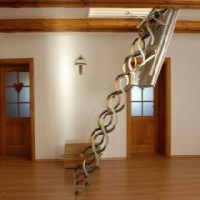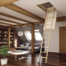Etant donné que l'escalier d'accès au grenier est souvent un élément nécessaire de la maison, vous devez aborder le choix du design avec l'entière responsabilité, étant donné le poids des nuances et des caractéristiques de la maison et du design.