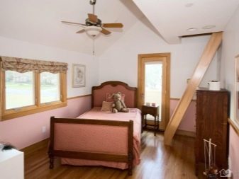Il y a beaucoup d'options pour utiliser la pièce dans le grenier, tout dépend des désirs des propriétaires et des caractéristiques du bâtiment. Lors de la mise en place d'un salon et d'une pièce chauffée dans le grenier, il est préférable de créer un espace pour les enfants, surtout si un escalier en bois massif mène au grenier directement à partir de la pépinière.