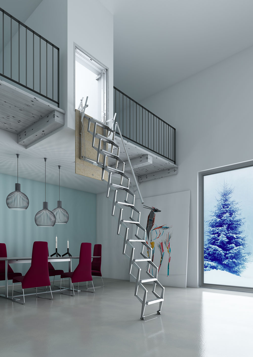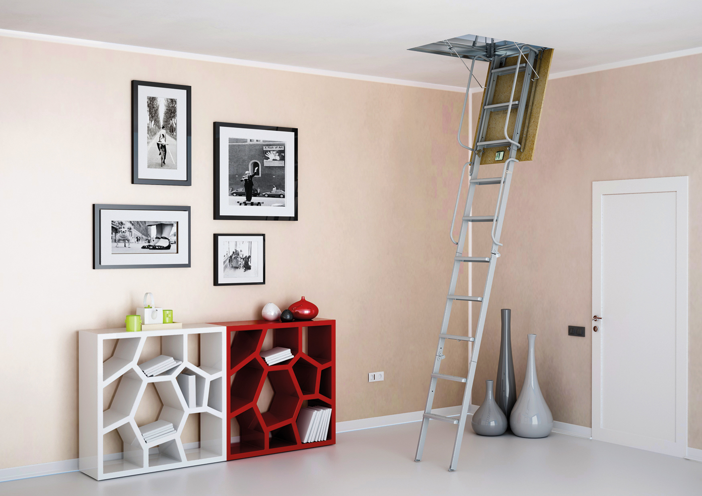 - Opportunité cacher visuellement échelle quand il s'agit de plier les modèles de grenier.