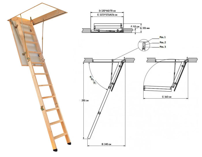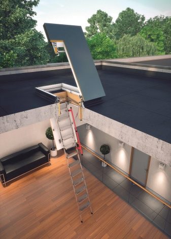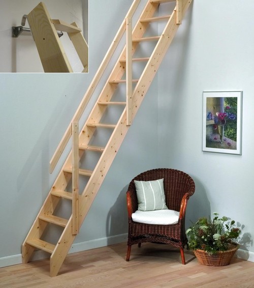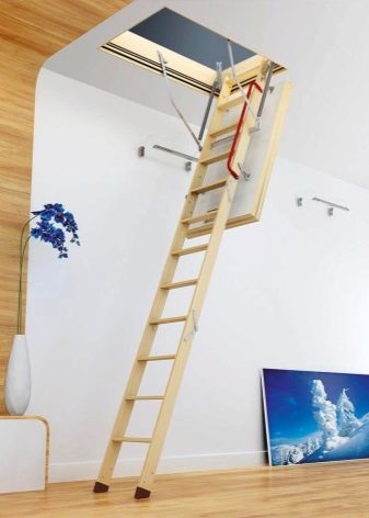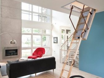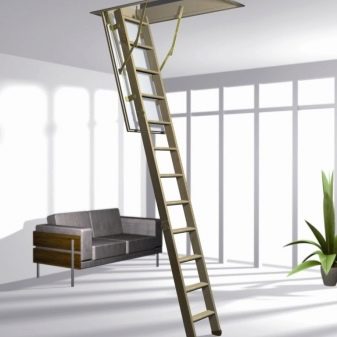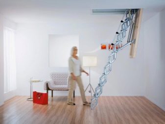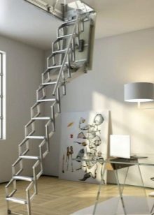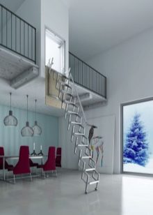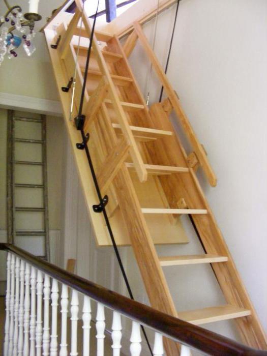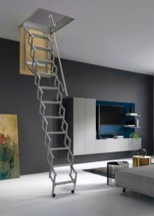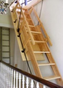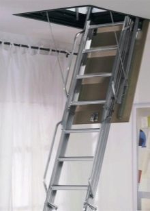 Le premier type de structures est le plus stable, mais elles occupent un territoire considérable. Les produits mobiles doivent être déplacés tout le temps dans un endroit plus pratique pour ne pas gêner le passage.Parce que la meilleure option peut être considérée avec précision les structures de pliage qui sont enlevées à tout moment. Une fois pliées, elles sont difficiles à remarquer, si elles ne sont pas spécifiquement recherchées. La fonction obligatoire est l'ajout du dessin de la trappe, dans lequel l'escalier se "cachera", cette trappe se produit: