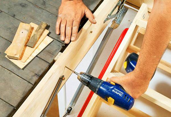 Les experts recommandent de commencer par les mesures depuis l’intérieur du grenier - c’est l’approche la plus pratique. Les trous du périmètre sont percés à l'aide d'une perceuse, puis une encoche est préparée à l'aide d'une scie sauteuse électrifiée. La trappe préparée doit être essayée, en laissant d'abord un cadre sans éléments supplémentaires. Sous cette forme, il est attaché à l'ouverture et cherche à savoir si le produit est bien ajusté. Une chose bien faite fait un trou sans défaut, si tout est correct,vous pouvez attacher le loquet et vérifier le résultat avec celui-ci.