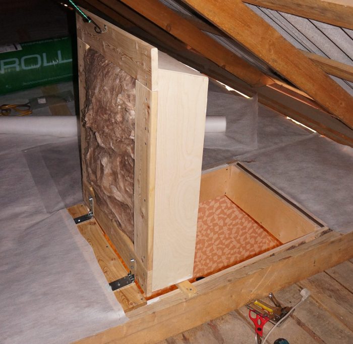 Le choix de la taille de la trappe doit prendre en compte les dimensions des escaliers. Sinon, il sera beaucoup plus difficile de les utiliser. Et bien sûr, l'entrée du grenier doit être isolée, sinon le condensat s'accumulera au sommet, capable de détruire rapidement les matériaux les plus durables.