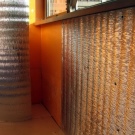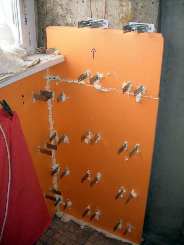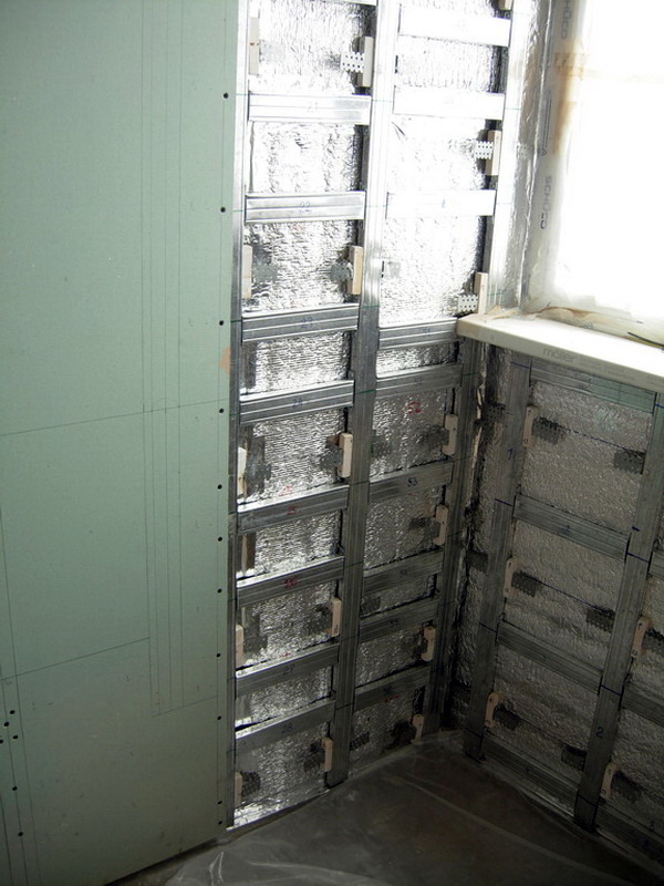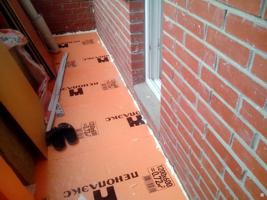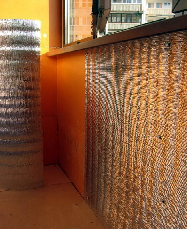 - Viele isolieren die Wände nicht, da sie nicht von der kalten Seite des Hauses kommen. In vielerlei Hinsicht ist es so, aber die Arbeit muss getan werden. Die Wände selbst sind keine Kältequellen, sondern die Fugen zwischen ihnen und den Seitenwänden des Balkons können z. Aus diesem Grund können alle Arbeiten nur darin bestehen, Penofol zu installieren, das dampfdicht und dünn ist. Er schützt die Wände vor Vereisung und Eindringen von Kondensat in den Balkon.