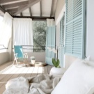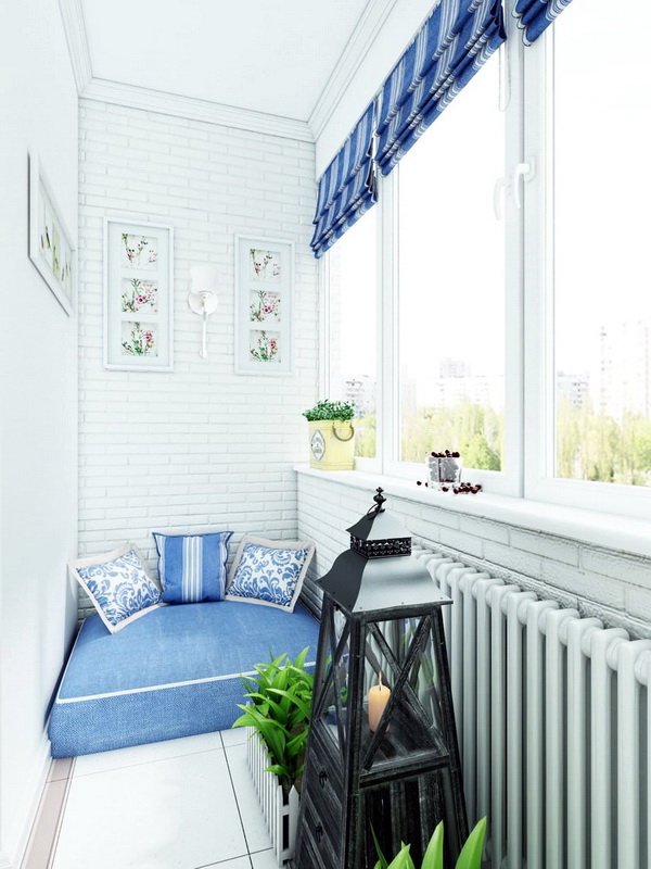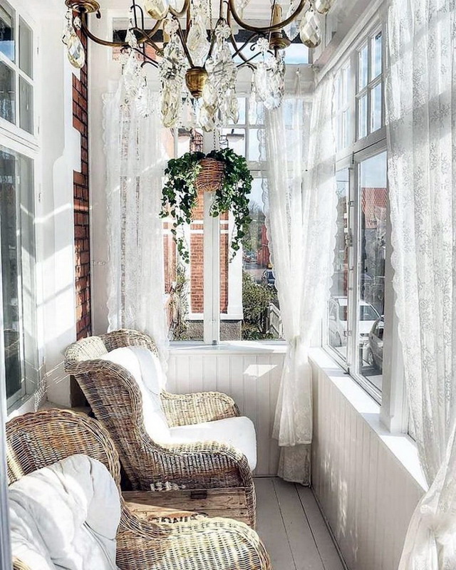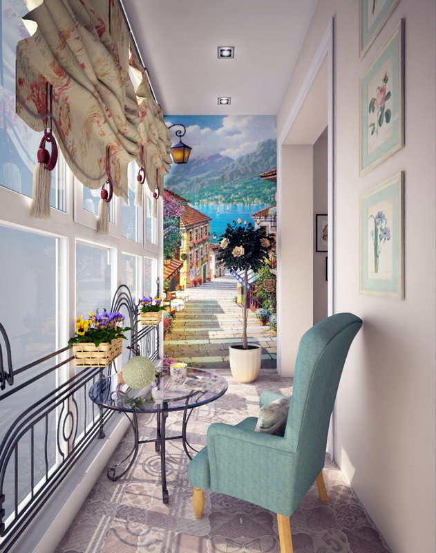 - Das Interieur im Stil der "französischen Provence" eignet sich für große Balkone. Weiß, Türkis, hellblau, milchig, grün ist eine ausgezeichnete Option für einen Ruheraum. Helle Töne erweitern visuell den Raum und passen sich einer bestimmten Art an.