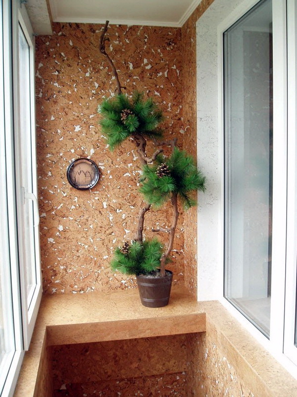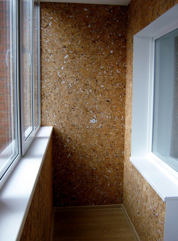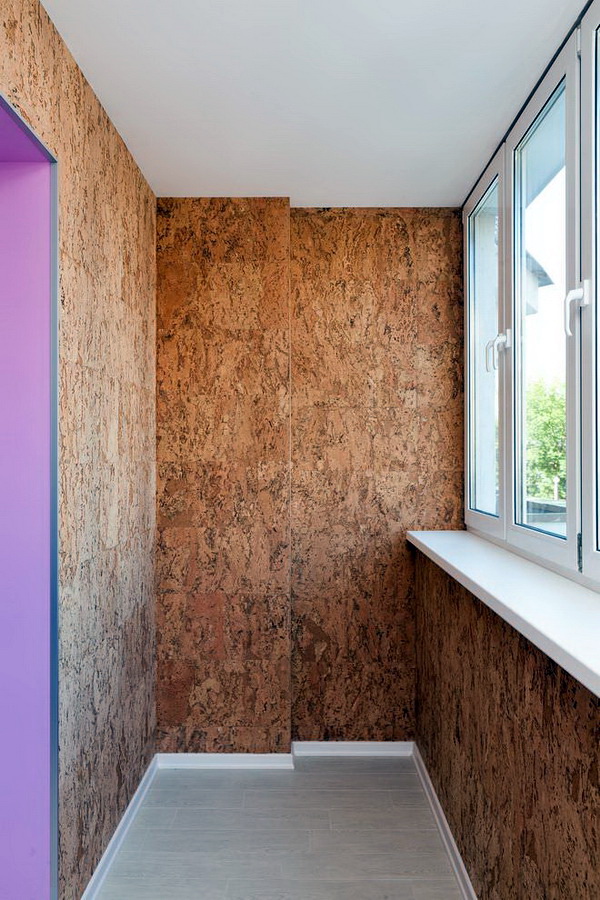 - Sie schaffen Gemütlichkeit, die sich nicht mit anderen Ausrüstungsmaterialien organisieren lässt. Korkplatten sind gepresste Korkeichenrinde. Korkplatten sind einfach zu installieren und eignen sich für jeden Balkontyp, unabhängig vom Temperaturniveau im Raum. Die Korkplatte absorbiert keine Fremdgerüche, einschließlich Tabakgeruch. Der Mangel an Material ist ein hoher Preis. Ein preiswertes penoplex wird auch zur Isolierung verwendet, und eine Mineralwolle ist auch perfekt.
