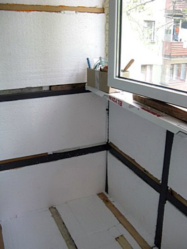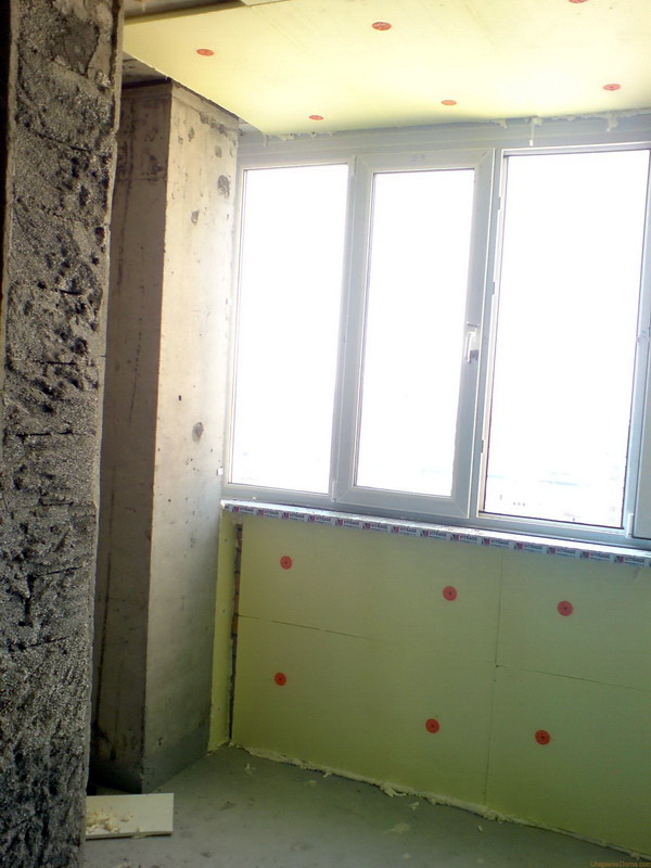 - Schritt 4. Die Wandverkleidung erfolgt nach dem Einbau von Fenstern und Bodenisolierung. Die Wände auf dem Balkon sind die Seitenwände, mit Ausnahme des Kapitals. Abschlussarbeiten werden in der Endstufe der Isolierung durchgeführt. Die Auswahl der Materialien hängt vom Budget ab. Im Zuge der Fertigstellung von installierten Fensterabhängen, mit Blick auf den Balkon.
