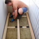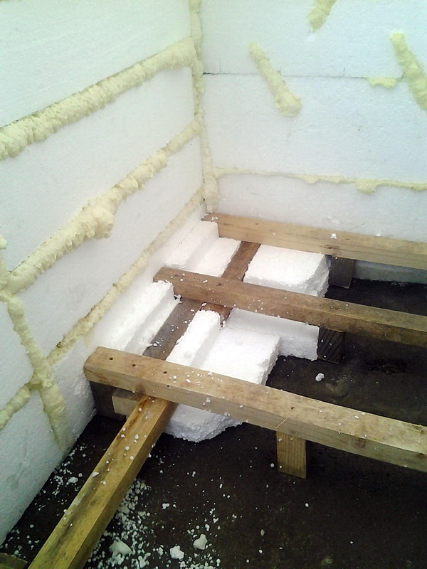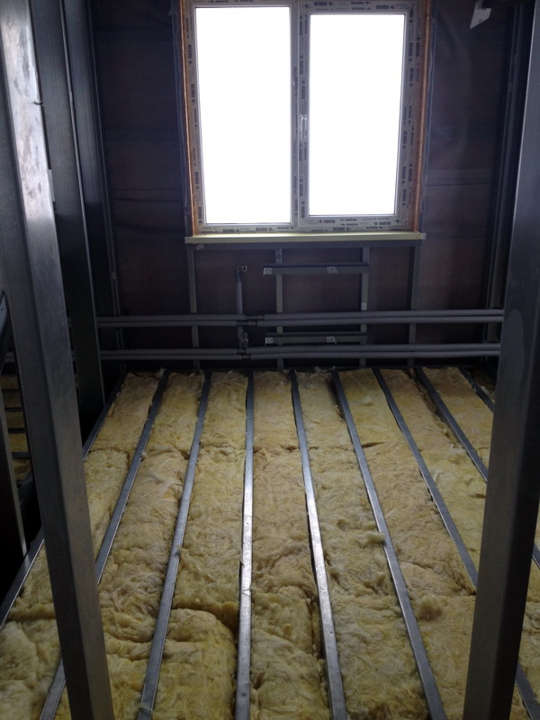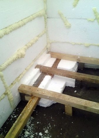 Nach dem Vorbereiten des Bodens können Sie mit den Abdichtungsarbeiten fortfahren.Reiki und Querbalken werden auf den Boden gelegt, sie werden mit selbstschneidenden Schrauben verbunden, sie müssen genau wie der zukünftige Boden befestigt werden.Nach der ganzen Arbeit können Sie den Erwärmungsprozess beginnen.