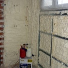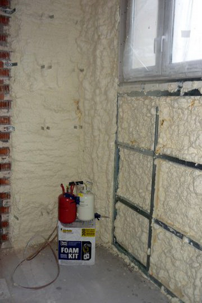 Jetzt auf dem Markt finden Sie eine neue Erfindung - das ist Polyurethan-Schaum-Spritzen. Dieses Material wird auf die Wand gesprüht und gefriert sofort.