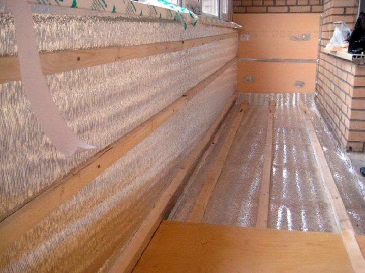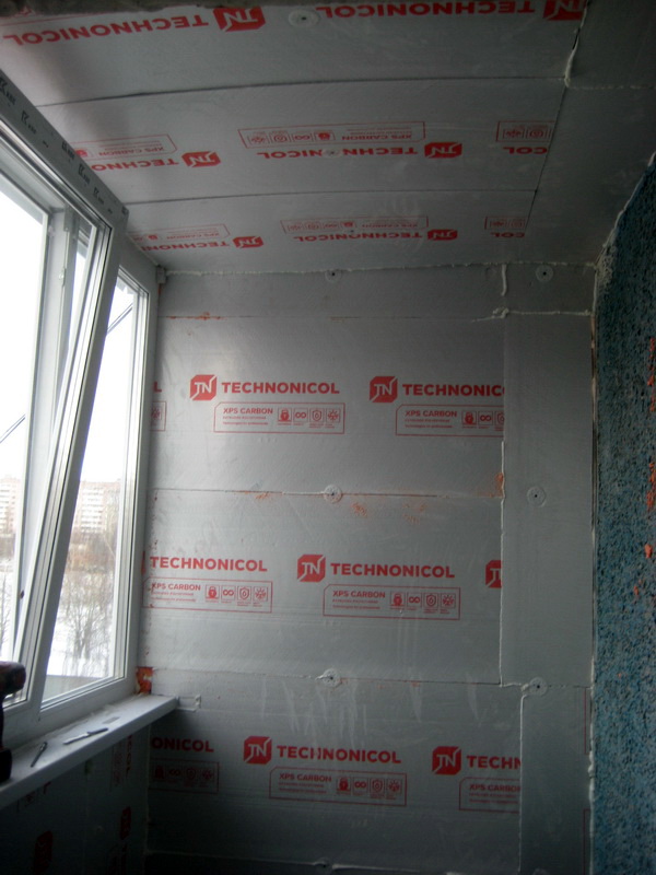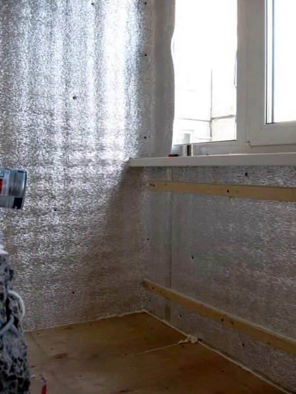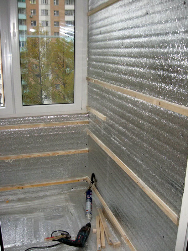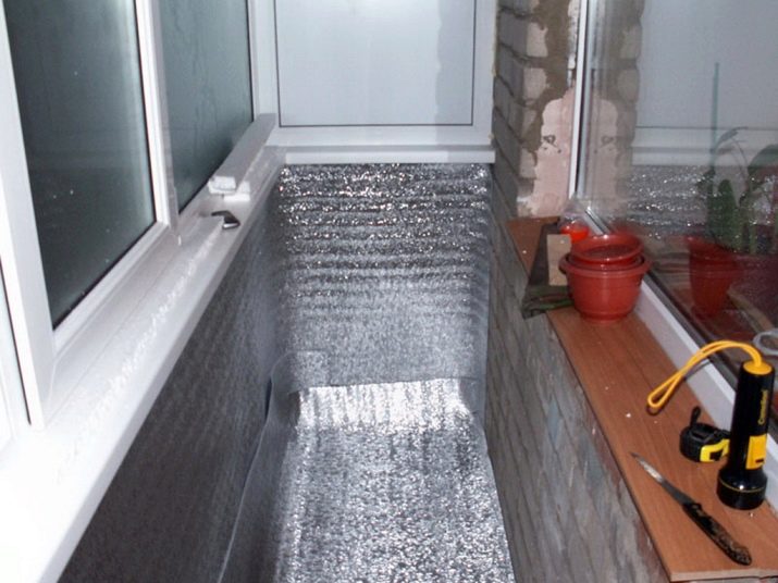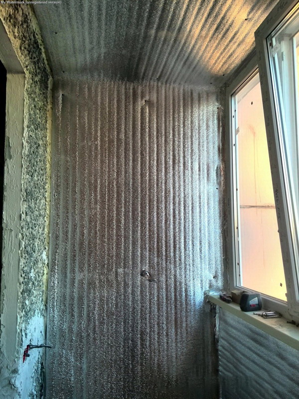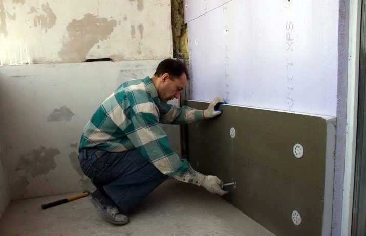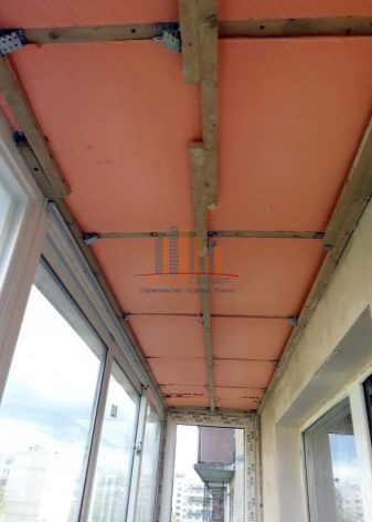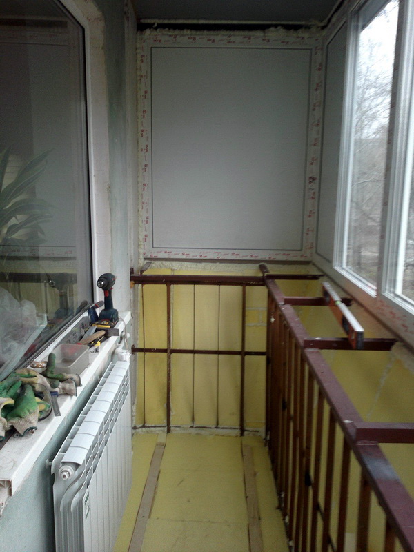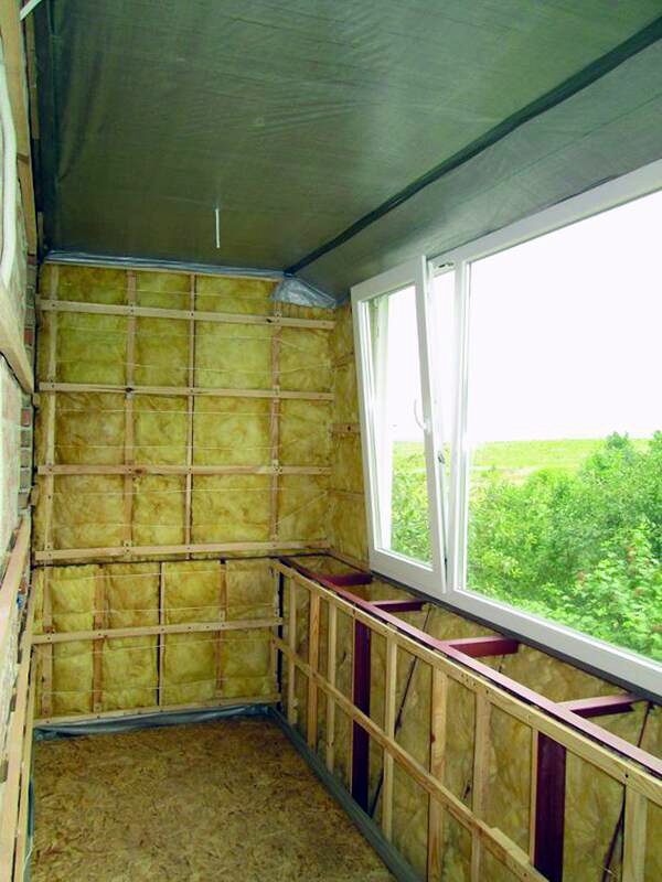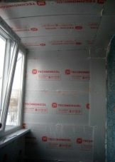 Der erste Schritt ist die Abdichtung der Brüstung. Eine Platte aus Polyethylen oder Dachmaterial ist auf ihrer inneren Oberfläche angebracht. Entsprechend den Paneelen ist die Balkenstange mit Dübeln ummantelt und gesichert. Es ist notwendig, die Breite des Balkons zu berücksichtigen, die Dicke der Dämmschicht wird davon abhängen.