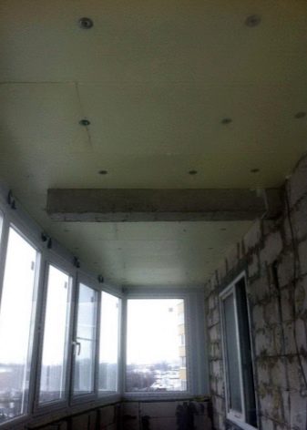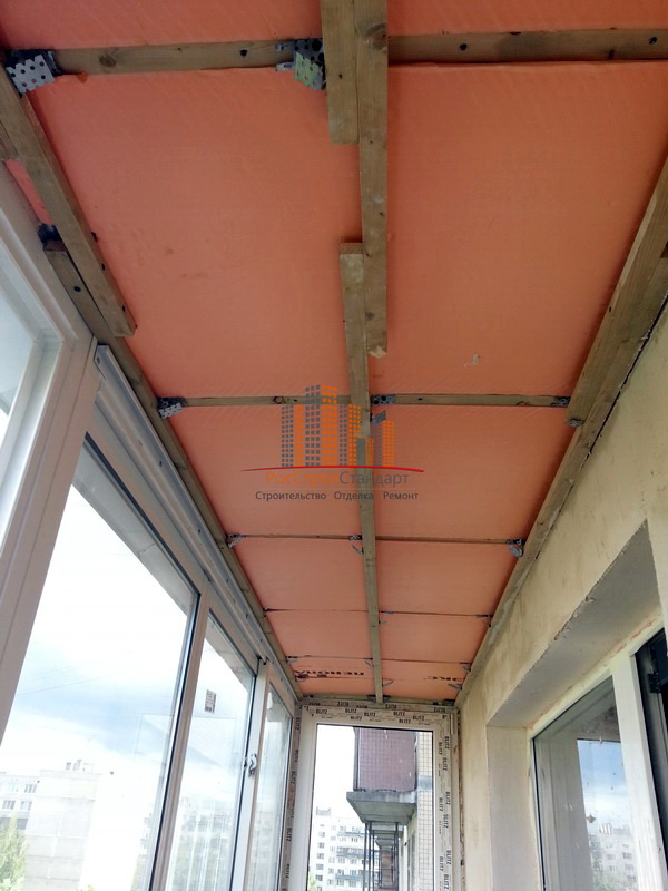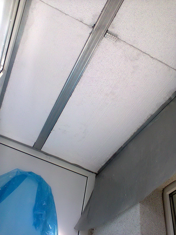 - Reiki, die repariert wurden, dienen als Grundlage für die Fertigstellung der Decke. Optionen können Gipskartonplatten oder Lamellen sein, die mit selbstschneidenden Schrauben befestigt werden.