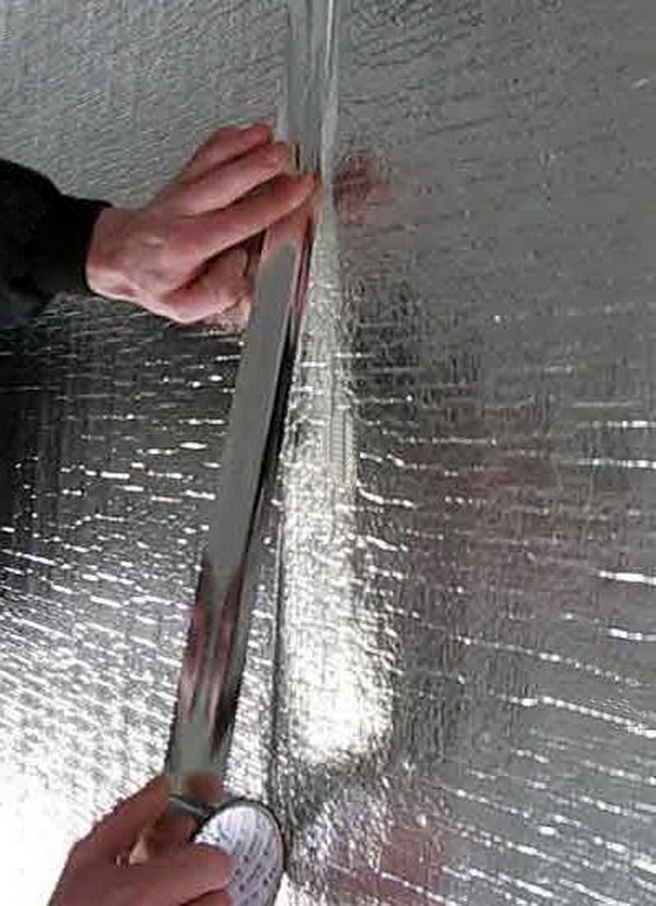 - PE-Schaum. Dieses Material hat eine poröse innere Struktur, die zu einer ausgezeichneten Wärmeisolierung beiträgt. Die obere Beschichtung auf beiden Seiten der Aluminiumfolie verhindert das Eindringen von Feuchtigkeit und schützt vor Umgebungsgeräuschen. Es kann entweder ein Panel oder ein Rollentyp unter den Namen Penofol oder Izolon sein.