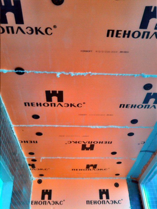 - Penoplex - Dies ist das neueste Material von denen, die zum Verkauf stehen. Er legt sich auf einen sauberen Boden und befestigt mit Schrauben.Sie gehen durch spezielle Löcher durch die Bodenplatte.