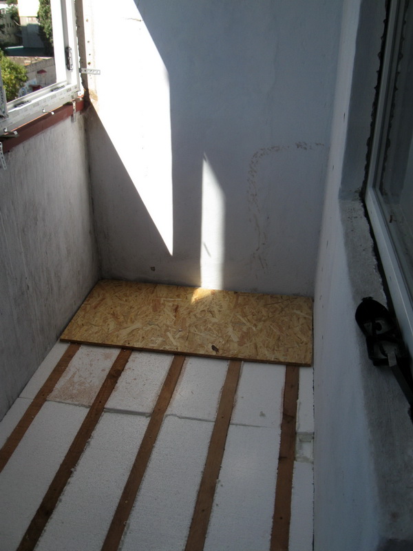 - Es ist notwendig, den Boden von Schutt gründlich zu reinigen. Dies wird helfen, die höchstmögliche Loggia-Höhe zu erreichen.