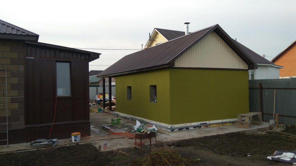 Egal wie warm und stark ein Bad aus Blähton ist, sie selbst sieht nicht sehr attraktiv aus. Eine ausgezeichnete Lösung für dieses Problem wird die Verwendung von dekorativem Putz sein, was die ästhetischen Qualitäten von Betonblöcken erhöht.Sie beginnen, nicht schlechter als ein einfacher Ziegelstein auszusehen und gleichzeitig ihre positiven Qualitäten nicht zu verlieren. Darüber hinaus ist die äußere Oberfläche sehr effektiv vor Regen und Frost geschützt.