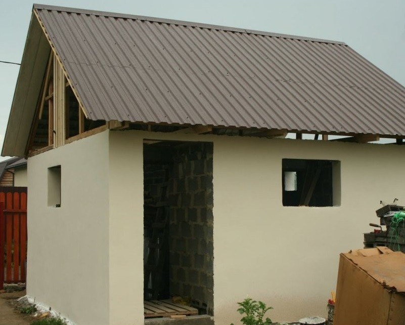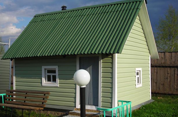 Ein Bad mit einem schlanken Dach ist einfacher zu bauen als mit einem Giebel, aber dann wird es nicht möglich sein, einen vollwertigen Dachboden oder einen Dachboden zu organisieren.