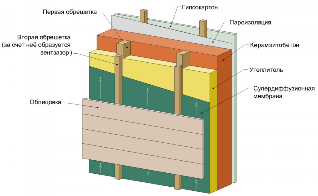 Die Wärmedämmung der Außenfläche der Wände ist sowohl mit extrudiertem Polystyrolschaum als auch mit Mineralwolle zulässig.