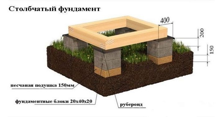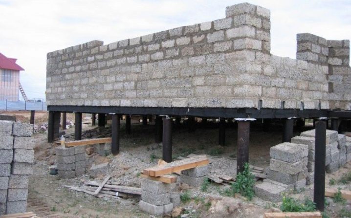 Kleine Bäder werden manchmal auf säulenartigen Basen gebaut, ergänzt durch razgalkami, aber wenn der Boden stark anschwillt, ist diese Idee ungeeignet.