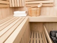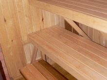 Die Regale für das Dampfbad sollten aus gut verarbeiteten und hochwertigen Materialien bestehen, die keine Schäden und schwere Mängel aufweisen.