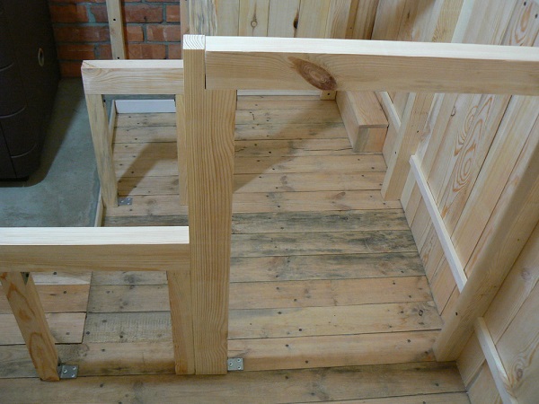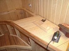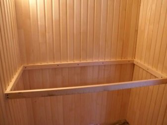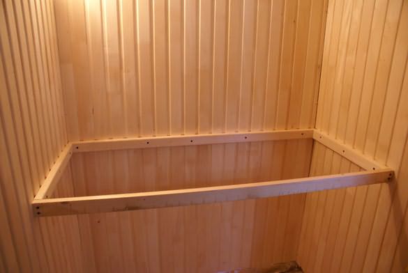 Unten ist eine Variante der Installation von Badregalen auf einer speziellen finnischen Technologie.