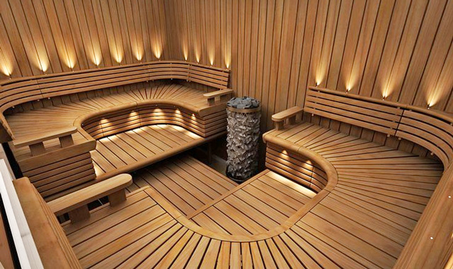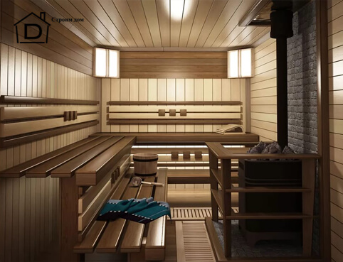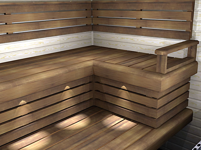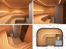 Bei der Planung eines Designs für ein Dampfbad müssen Sie besonders auf die Anordnung der Regale im Raum achten: