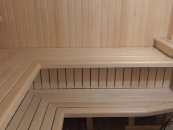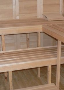 Es gibt viele Möglichkeiten für die Platzierung des Regals im Dampfbad. Es ist möglich, ein geeignetes Design für die Platzierung von Layout und Filmmaterial zu erstellen. Zum Beispiel Für ein kompaktes Dampfbad ist es zulässig, Eckbänke zu bauendie wenig Platz benötigen, aber für einen bequemen Zeitvertreib für Benutzer bequem bleiben.