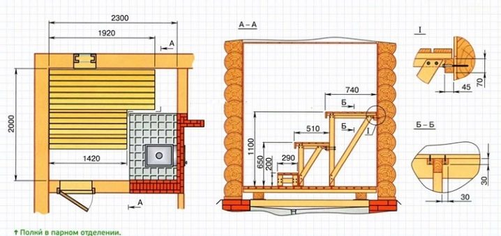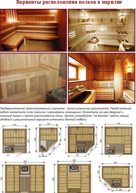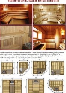 Experten empfehlen bei der Vorbereitung des Projekts mehrere Möglichkeiten für die Platzierung der Regale im Dampfbad.