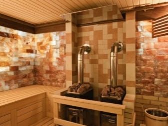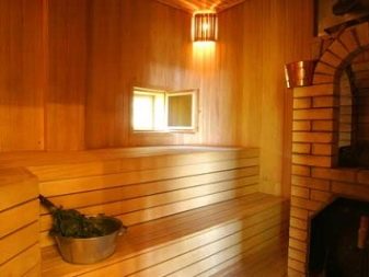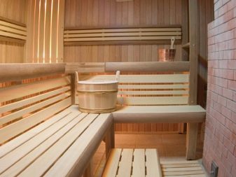 Es ist zulässig, auf Edelstahlteile nur dann anzuwenden, wenn eine Rahmenbasis entworfen wird, die in Zukunft mit Platten abgedeckt wird. Dies ist aufgrund der Tatsache, dass Metallhalterungen können sehr heiß im Dampfbad und Sie können versehentlich über sie verbrannt werden, wenn sie auf der Oberfläche sind.