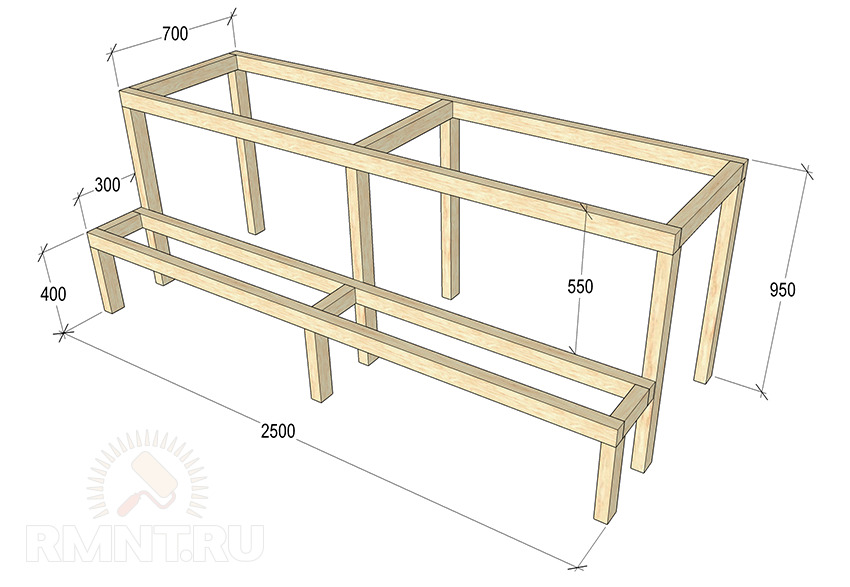 - Danach müssen Sie zur Erstellung des Rahmens gehen. Um dies zu tun, müssen Sie zuerst den Hauptrahmen erstellen. Ihre Länge ist bereits bekannt, aber Sie müssen die Breite selbst wählen.