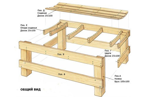 Danach wird der Besitzer bequemer sein, um die optimale Lösung zu wählen. Außerdem können Sie anhand der Größe der Bänke die benötigte Holzmenge richtig berechnen.