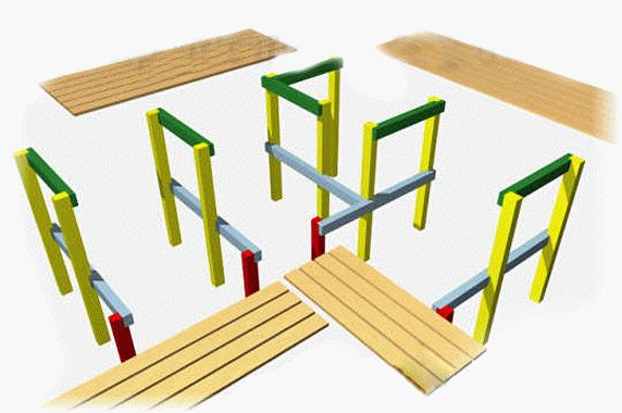 - Um die Ebene darunter zu machen, benötigen Sie 6 halbe Meter Teile und 6 Balken mit einer Länge von 1,5 m.