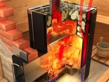 Eine weitere Möglichkeit, einen Warteraum zu beheizen, ist ein spezielles Design des Badeofens. Sein Heizteil befindet sich im Dampfbad und der Ofenteil wird aus dem Dampfbad (z. B. im Wartezimmer) entnommen. Die Feuerstelle wird unter dem Kamin gemacht (benutzen Sie das Portal, die entsprechenden dekorativen Elemente).