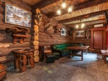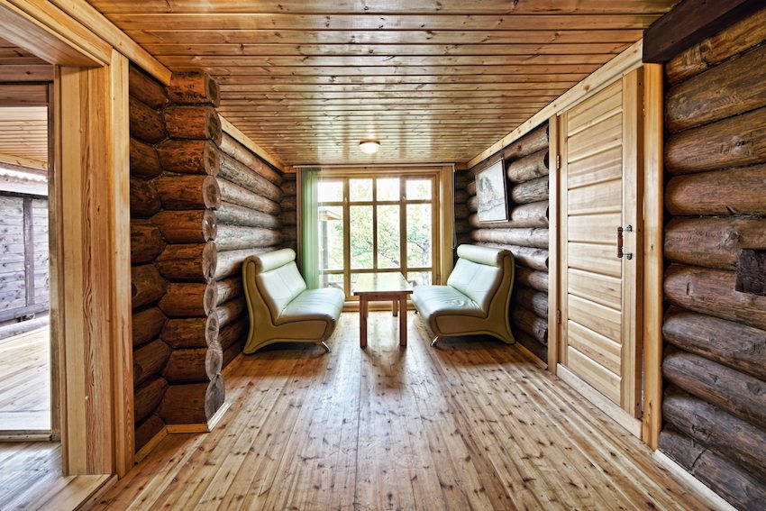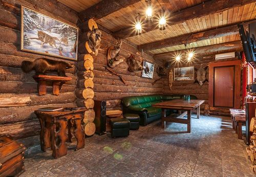 Trotz der Tatsache, dass der Stil jedes Besitzers in der Sauna-Lobby nach seinem Geschmack und Budget ausgewählt wird, bleiben die Warteräume im russischen Stil der gleiche Klassiker. Sie reproduzieren am genauesten die Atmosphäre, wie sie die Bäder in den alten Tagen gestalteten. Für die Wände sind in der Regel verwendet Protokolle oder ihre Nachahmung von Holz (Blockhaus). Der Boden und die Decke sind ebenfalls aus Holz und die Balken sind normalerweise an der Decke angeordnet.