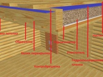 Deckenisolierung - eine notwendige Voraussetzung, um den Wärmeverlust im Bad zu reduzieren (besonders bei Gebäuden mit kaltem Dachboden).Zur Wärmedämmung können Sie sowohl Basaltwatte als auch Blähton aus verschiedenen Fraktionen verwenden. Große Körnchen bieten Isolierung, klein - füllen Sie den Raum zwischen ihnen. Anstelle von Lehmkrumen passen Lehm oder Sägemehl.