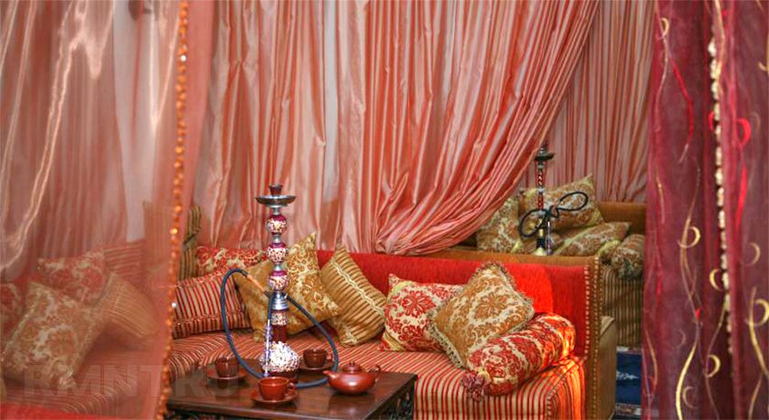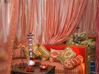 Das Zentrum des Warteraums wird ein Duett aus einem Tisch mit niedrigen Beinen und einem gemütlichen Sofa oder einer Ottomane mit einer Fülle kleiner Kissen sein. Dicke Gardinen an den Vorhängen können einen satten Farbton haben. Schön wenn sie mit Quasten oder Fransen verziert sind. Fügen Sie orientalische Noten in das Innere hinzu und lassen Sie exquisite Wasserpfeife, sowie kleine Schalen anstelle von Tassen und Räucherstäbchen.