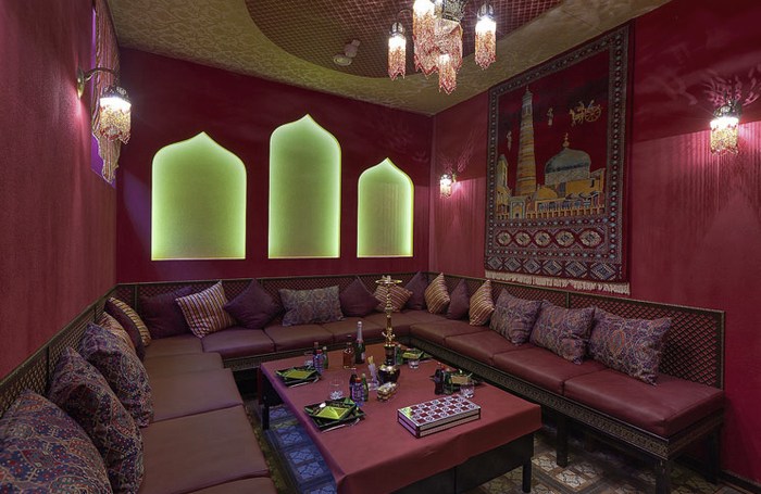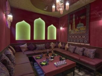 Kleine Eisen-Tablet-Leuchten sehen harmonisch in modernen Innenräumen aus.Für östliche Erholungsgebiete ist es besser, exquisite Stehlampen zu wählen. Es ist logisch, die Schalter in der Nähe der Tür zu platzieren, so dass es praktisch wäre, sie zu benutzen, wenn Sie gerade den Warteraum betreten haben.