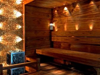 Wenn die Wände des Warteraums sehr heiß werden, kann für die Veredelung von Materialien aus Holz verwendet werden. Dieses Rohmaterial toleriert einen Temperaturanstieg, hat keine Angst vor Feuchtigkeit, hat eine geringe Wärmekapazität und ein geringes Gewicht. Neben der afrikanischen gibt es auch die asiatische Sorte Abasha, deren Leistung etwas niedriger ist. Das Holz hat eine helle cremefarbene Farbe und lässt sich gut mit Zedernholzdielen kombinieren, so dass Sie interessante Farbkontraste im Dampfbad schaffen können.