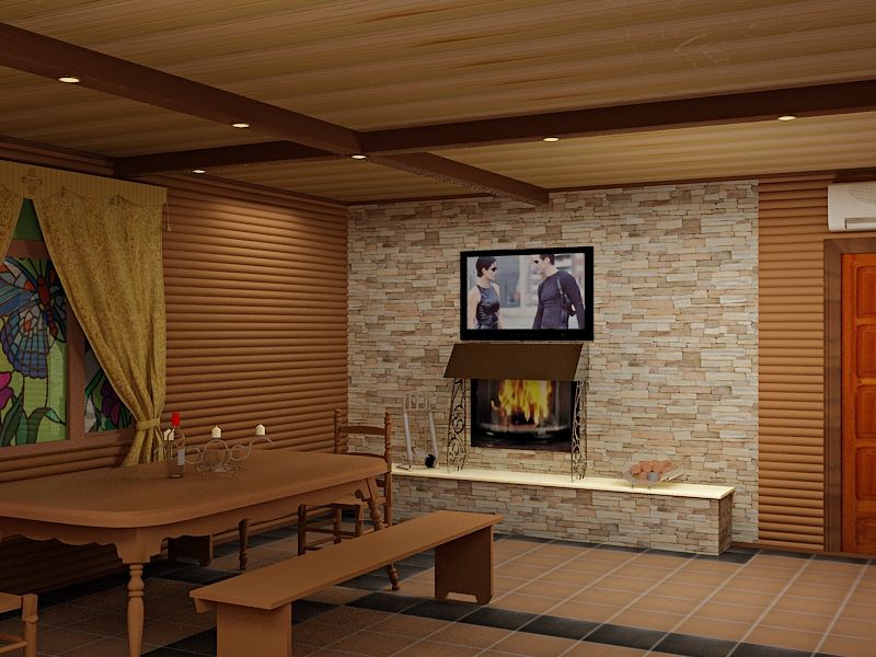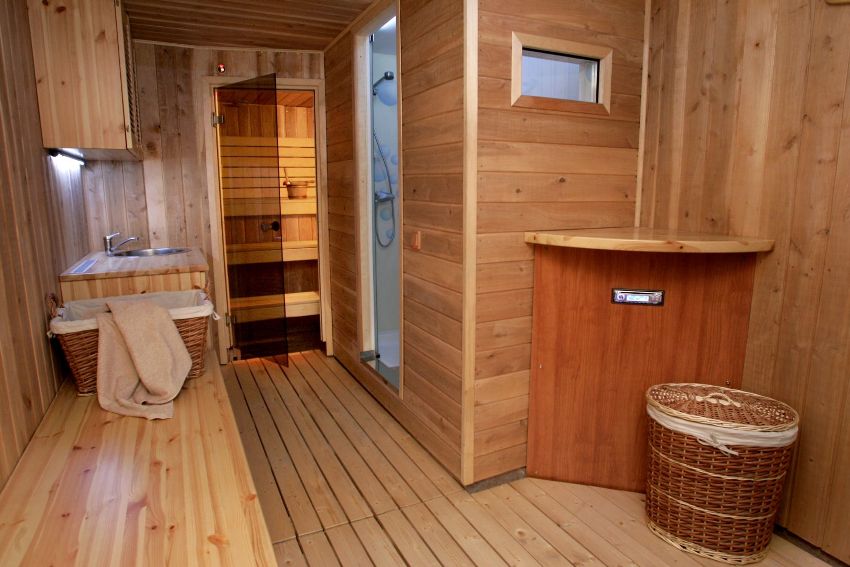 In der Regel ist das Innere der Umkleidekabine isoliert und mit dekorativen Materialien ummantelt. Für ein Holzbad ist eine Endbearbeitung überhaupt nicht erforderlich. Die Hauptaufgabe des Eigentümers ist eine hochwertige Isolierung und Wärmeschutz der Struktur.