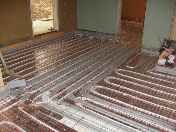 Eine modernere Variante der Heizung ist die Installation einer Fußbodenheizung. Es kann Wasser oder seine elektrische Modifikation sein.