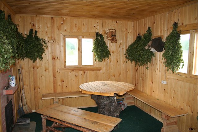 Ein Wartezimmer ist ein Zimmer direkt vor dem Dampfbad. Sein Hauptzweck ist eine Verbindung zwischen dem kalten Eingang zum Bad und dem heißen Dampfbad. Es sollte keine kalte Luft passieren. Ein Ankleidezimmer kann geräumig oder klein sein und ist ausschließlich zum Kleiderwechsel gedacht. Oft gibt es Warteräume von mittleren und ausreichenden Gesamtabmessungen. Neben ihrer Hauptfunktion dienen sie nach dem Bad als Ruhezone.