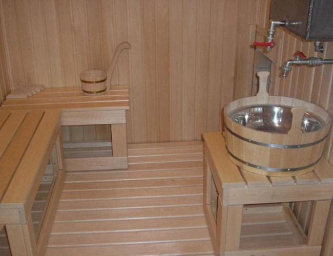 Obligatorische Räumlichkeiten, sei es ein kleines Bad oder ein großes, sind das Dampfbad und die Garderobe. Die Hauptsache ist, den Raum im Dampfbad so auszustatten, dass genügend Regale vorhanden sind. In einem kleinen Raum müssen Sie sie in Form einer Leiter haben.. Der Raum muss mit Holz beendet werden. Der Ofen ist in der Ecke platziert, so dass Sie sich frei bewegen können, aber gleichzeitig sollte der Ofen bequem zugänglich sein.Wenn es sich zu nah an einer Holzwand befindet, ist es an dieser Stelle notwendig, einen Schutzschirm auszustatten oder Mauerwerk aufzutragen.