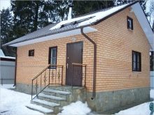 Wenn das Dach zwei oder mehr Neigungen hat, werden zusätzliche Stützen zwischen den Hängen installiert. Auf den Balken montieren sie die Kiste mit den kleinen Lamellen, bedecken sie mit Wasserabweisungs- und Wellplatten, Metallfliesen oder anderen modernen Analoga. Stellen Sie bei Bedarf ein Gegengitter her.