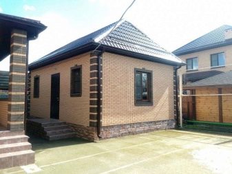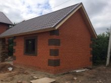 - Die Verwendung von Ziegeln erlaubt es, Bäder in verschiedenen Formen und Größen zu bauen, die selbst die komplexesten architektonischen Projekte verkörpern und verschiedene Arten von Innen- und Außendekoration verwenden. Die Stärke des Gebäudes ermöglicht es Ihnen, mit dem inneren Layout und der Form des Daches zu experimentieren.
