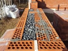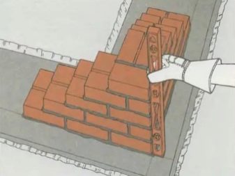 Bei der Verlegung von Endreihen ist es erforderlich, die Lösung mit einer Einkerbung von 10 mm beim Füllen der Nähte und von 30 bis 35 mm beim Legen der Einöde zu versehen. Wenn es Ziegel mit unterschiedlichen Spänen gibt, dann können sie mit Ausnahme der Ecken und Stützzonen für die Verlegung von Mauerwerksreihen verwendet werden.