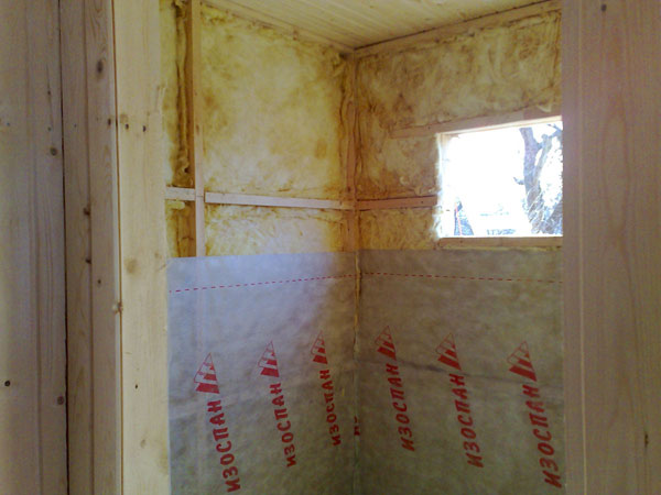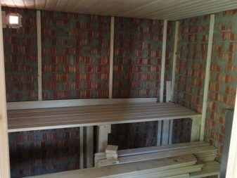 Schaumglas hat einen Nachteil - es ist teuer. Dampfbarrieren Dampfräume und Waschraum sollten gebührend beachtet werden. Es ist notwendig, gefaltete Mineralwolle unter der Holzverkleidung zu legen. Die Decke sollte auch isoliert sein.. Zur Erwärmung des Warteraums können Sie Kraftpapier anstelle von Folie verwenden, wodurch der Prozess günstiger wird.