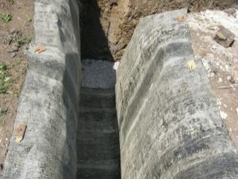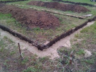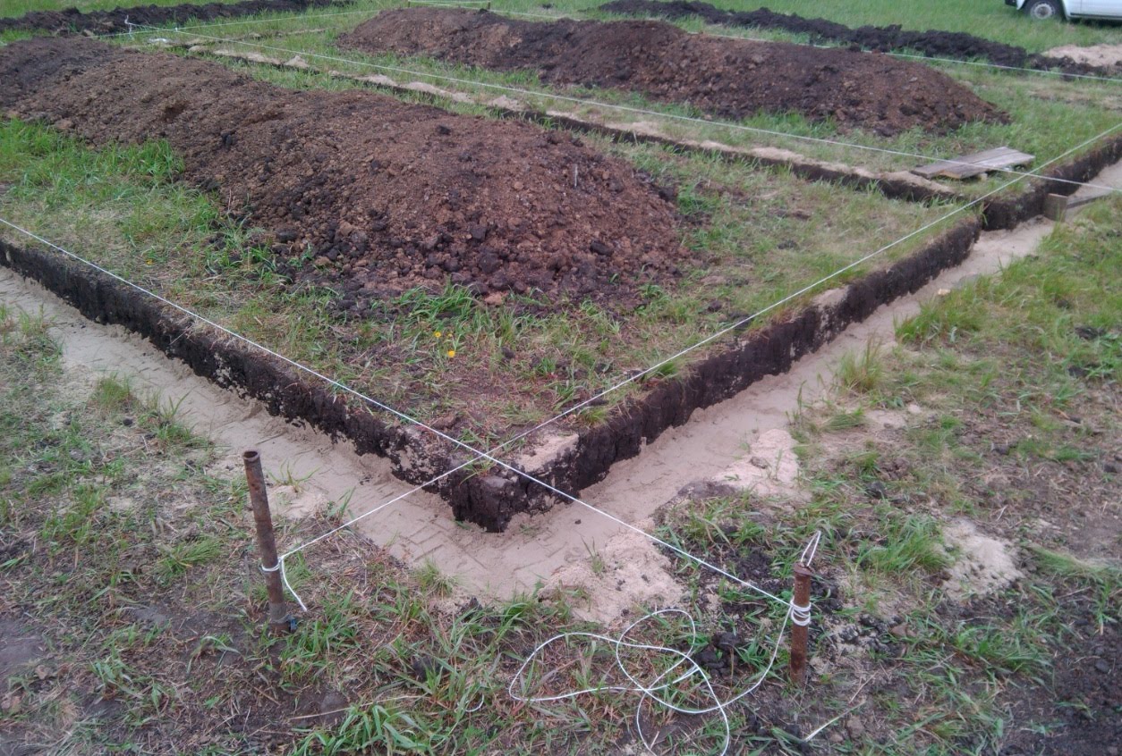 - Grabenaushub (Tiefe 0,3-0,8 m, Breite 25-40 cm). Es ist wichtig zu berücksichtigen, dass das Fundament mindestens einen Meter über dem Grundwasserspiegel beginnen sollte;
