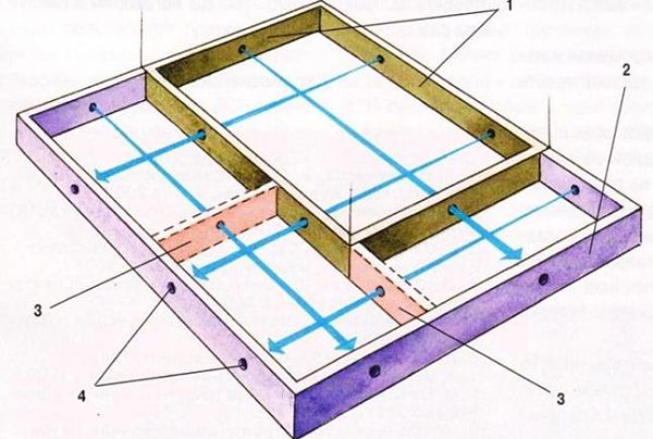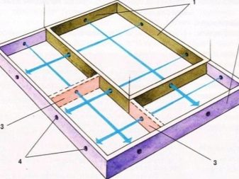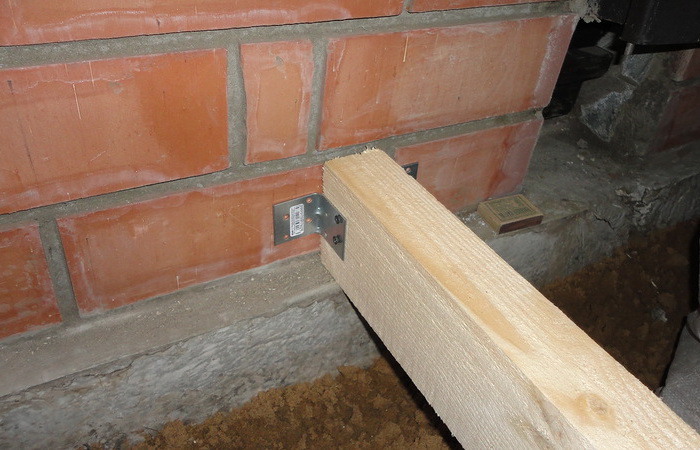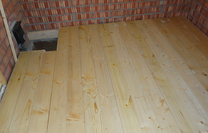 Für die Installation des Bodens werden Balken mit einem Querschnitt von 15x10, 25x10 mm verwendet, die an den unteren Teil der Wände mit Metallecken montiert sind. Um von zwei Seiten nacheilen zu können, nageln Sie die Stäbe - die Basis für den Unterboden. Auf ihnen wird eine Platte befestigt, dann eine Abdichtung, eine Isolierung und eine zweite Abdichtung. Danach wird ein sauberer Boden installiert.