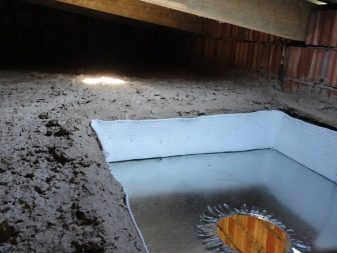 Um die Lebensdauer der Deckenablagen zu erhöhen, müssen diese mit einer wasserabweisenden Schicht versehen werden.. Sie können Stoffabsinthe verwenden, die bequem mit Bauklammern montiert werden kann. Übergießen Sie eine Schicht, bestehend aus einer Mischung aus Ton und Sägemehl. Nach dem Trocknen wird es mit Sand bestreut.